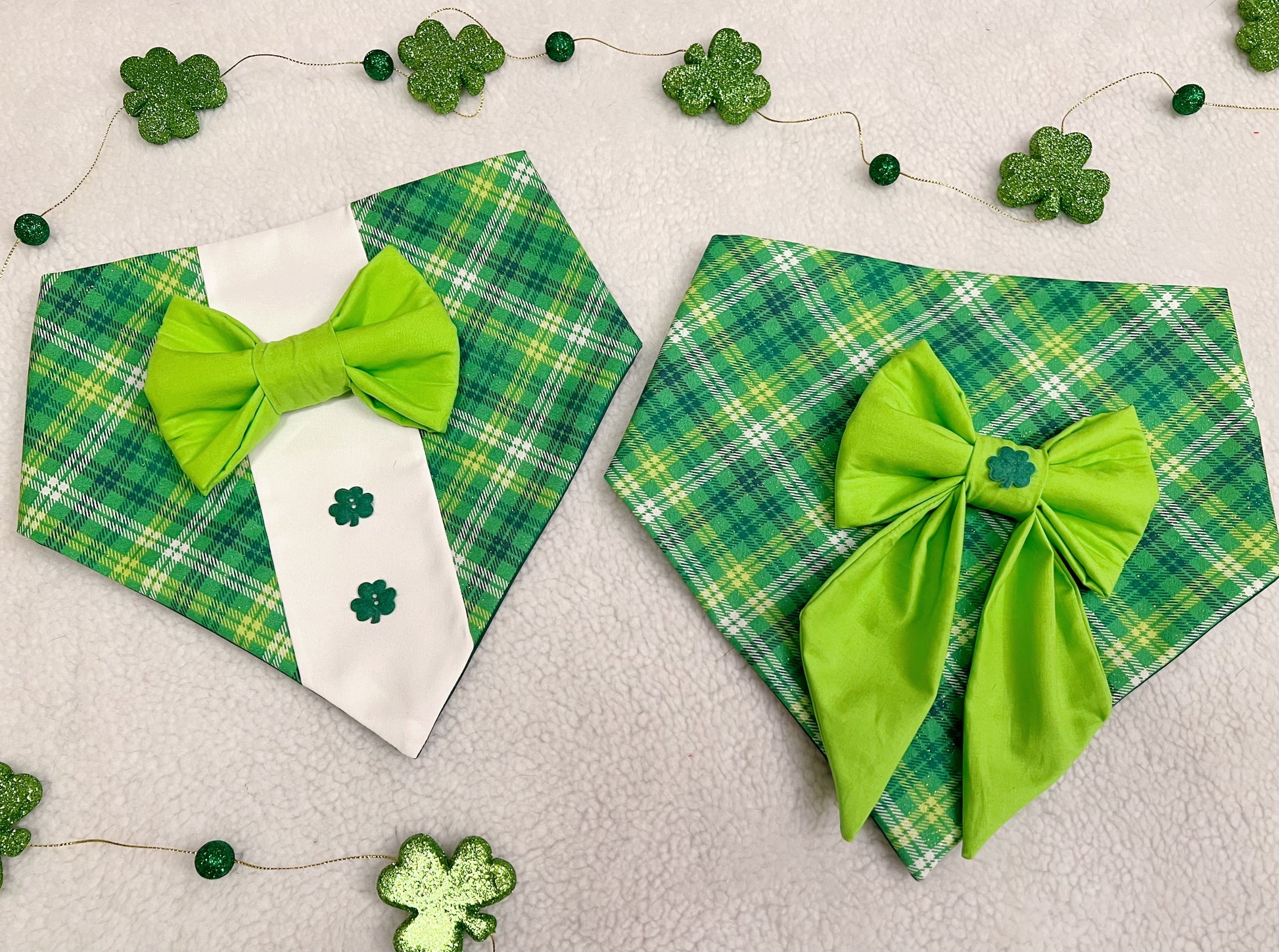 An animal bandana. One is a plaid tux style and one is plaid with a sailor bow add on.